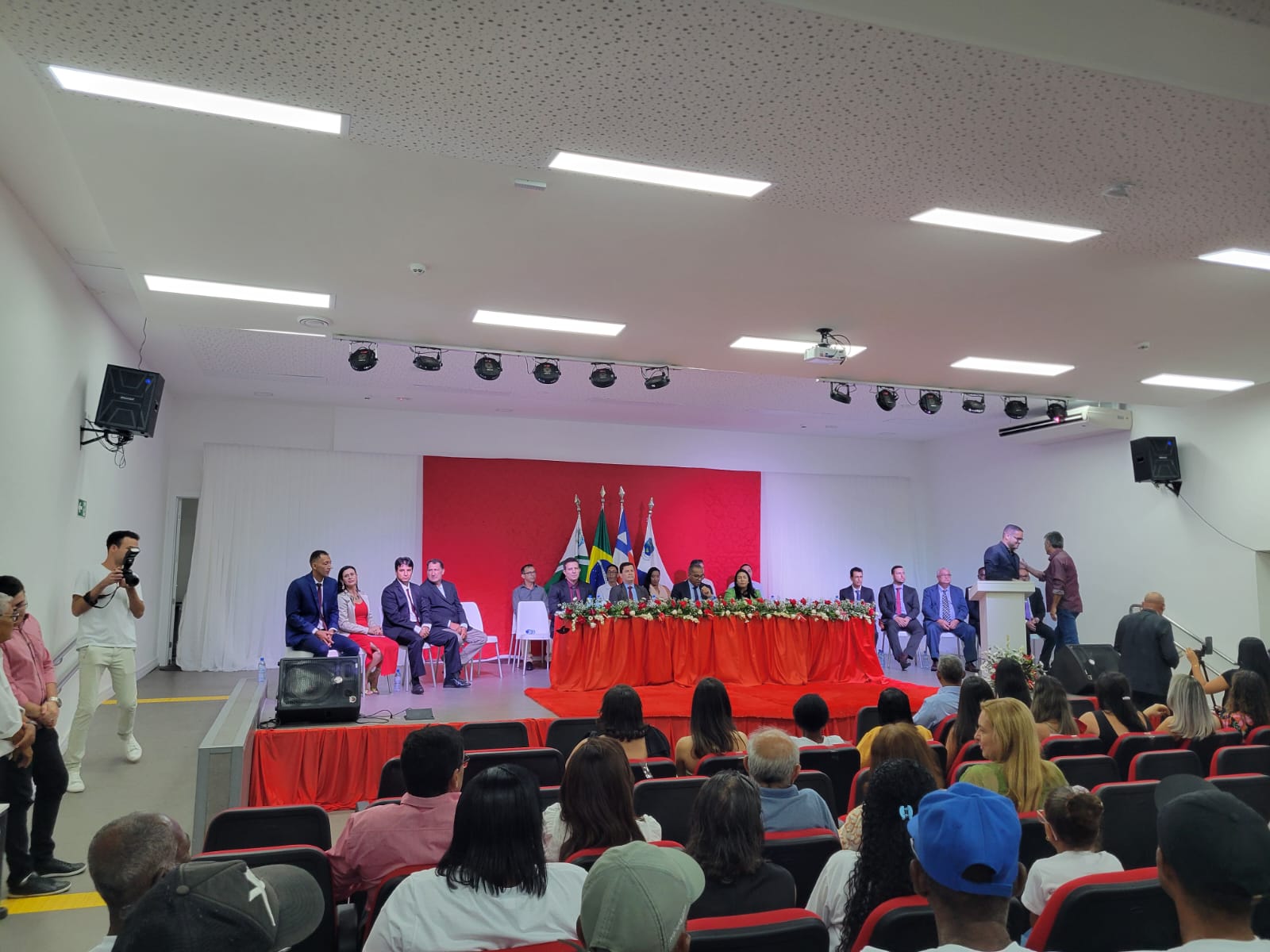Prevista para 9h, a sessão só foi iniciada às 10h, terminando ao meio-dia. Além dos vereadores empossados, para mandato entre 2024-28, fizeram uso da palavra o prefeito reeleito Neto e a vice-prefeita reeleita, Romilce Lopes.